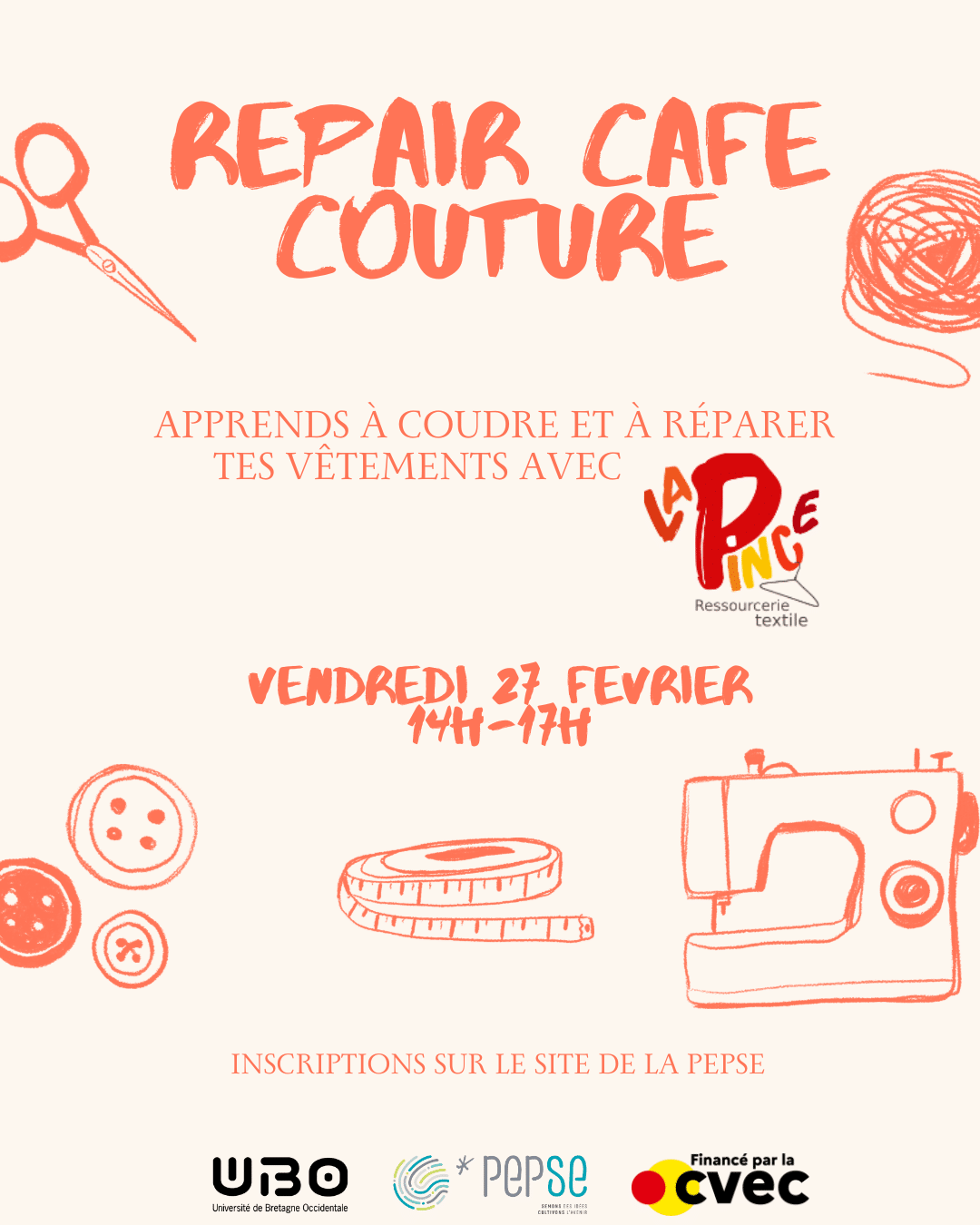 Viens apprendre à coudre, réparer ou customiser tes vêtements. Que tu sois débutant·e ou déjà à l’aise, tu peux venir avec tes pièces à réparer ou tes projets à réaliser.