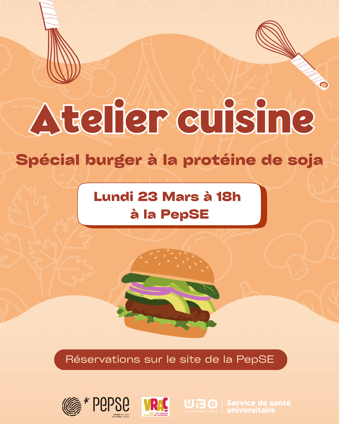 Le SSE et la PepSE te proposent un atelier cuisine convivial, animé par VRAC 29, pour apprendre à préparer un repas végétarien simple, économique et gourmand !