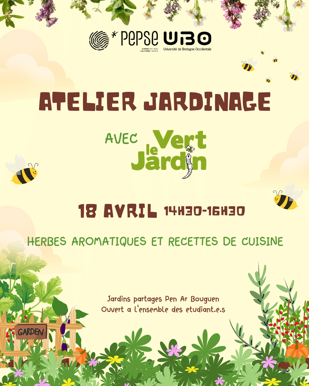 Rejoins-nous pour un atelier jardinage avec Vert le Jardin au jardin partagé du Bouguen ! 🌿