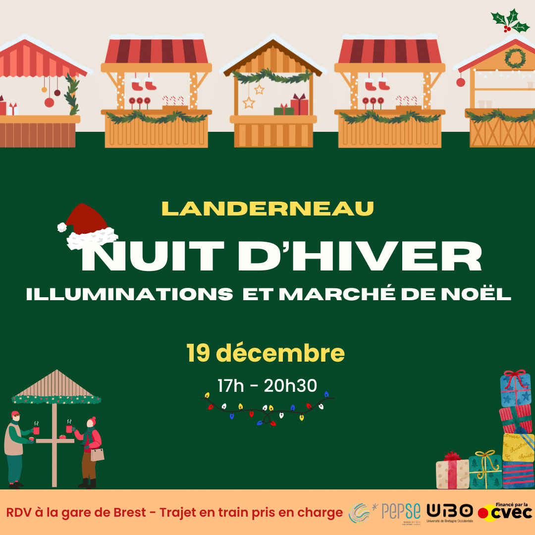 Le rendez-vous est prévu le vendredi 19 décembre à 17h à la gare de Brest où l’on prendra le train pour Landerneau. Nous rentrerons à Brest à 20h30.