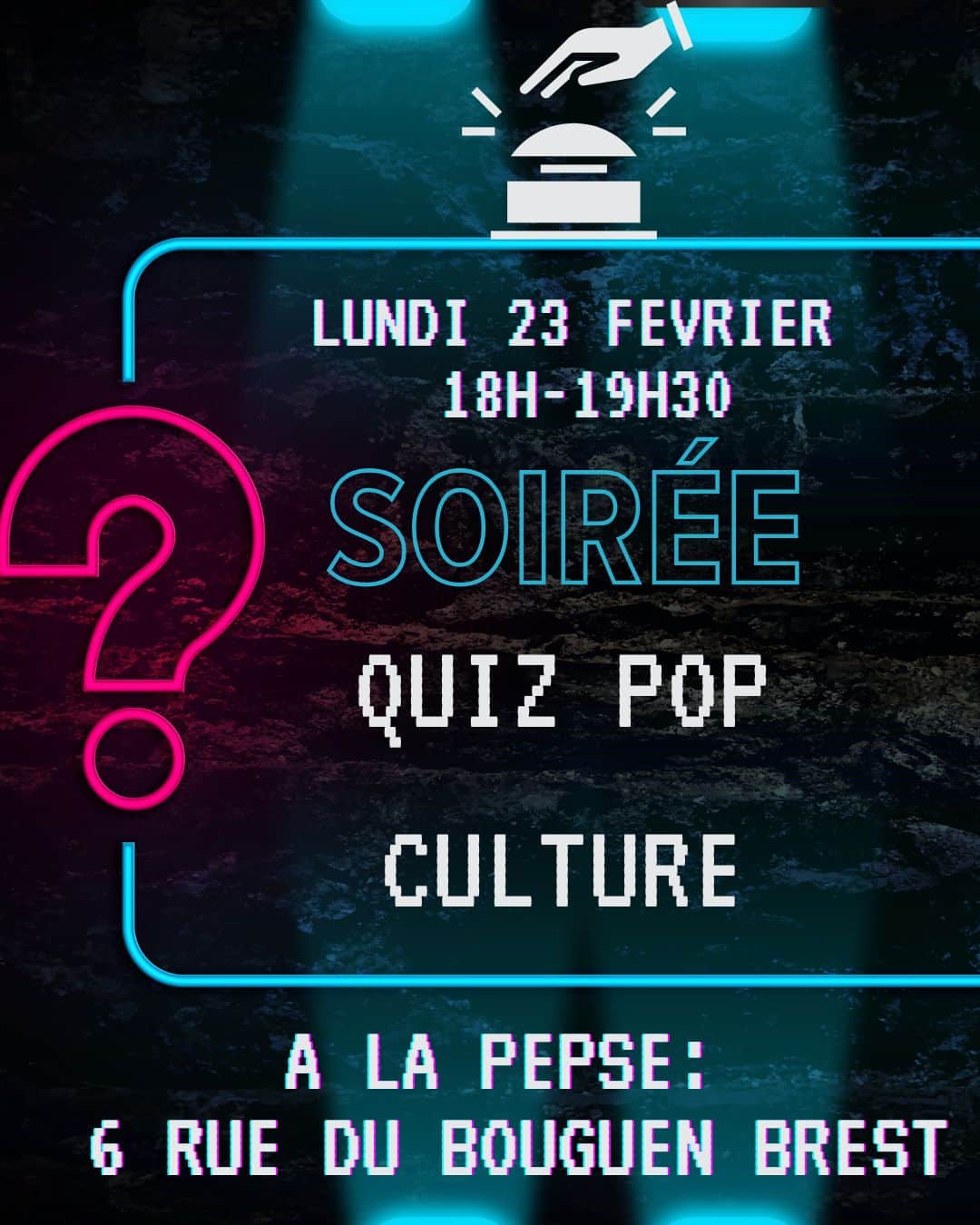 Rejoins-nous pour une soirée quiz pop culture où films, séries, musique, jeux vidéo et références cultes seront au rendez-vous.
