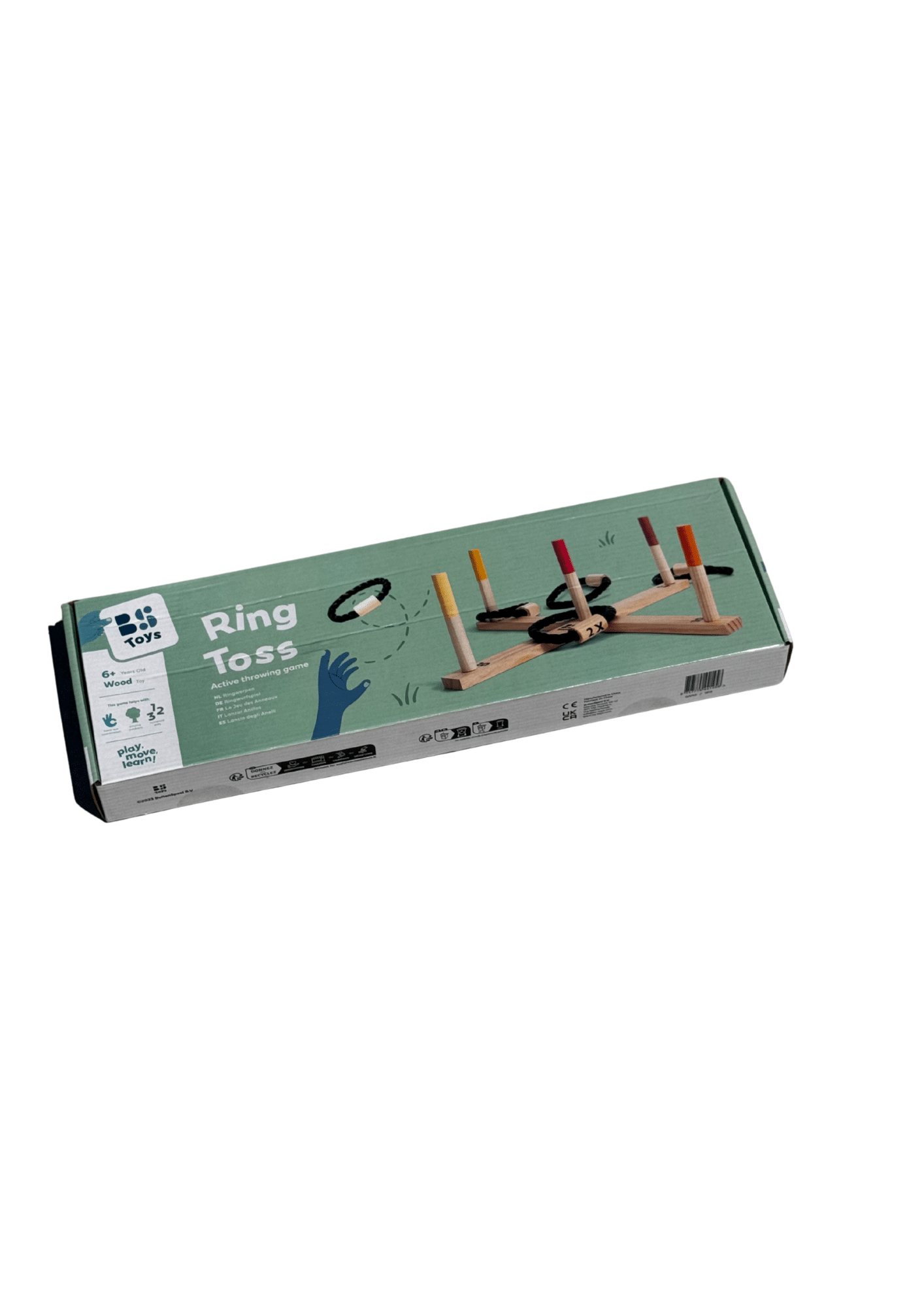 Ces anneaux et ces quilles sont très connus dans le milieu du jouet en bois, c’est un jeu d’adresse à jouer en extérieur, ce jouet en bois captive les enfants et adultes autour de lui, et cela à grâce à ce principe simple : jetez les 6 anneaux dans les quilles pour empocher le plus de points possible.