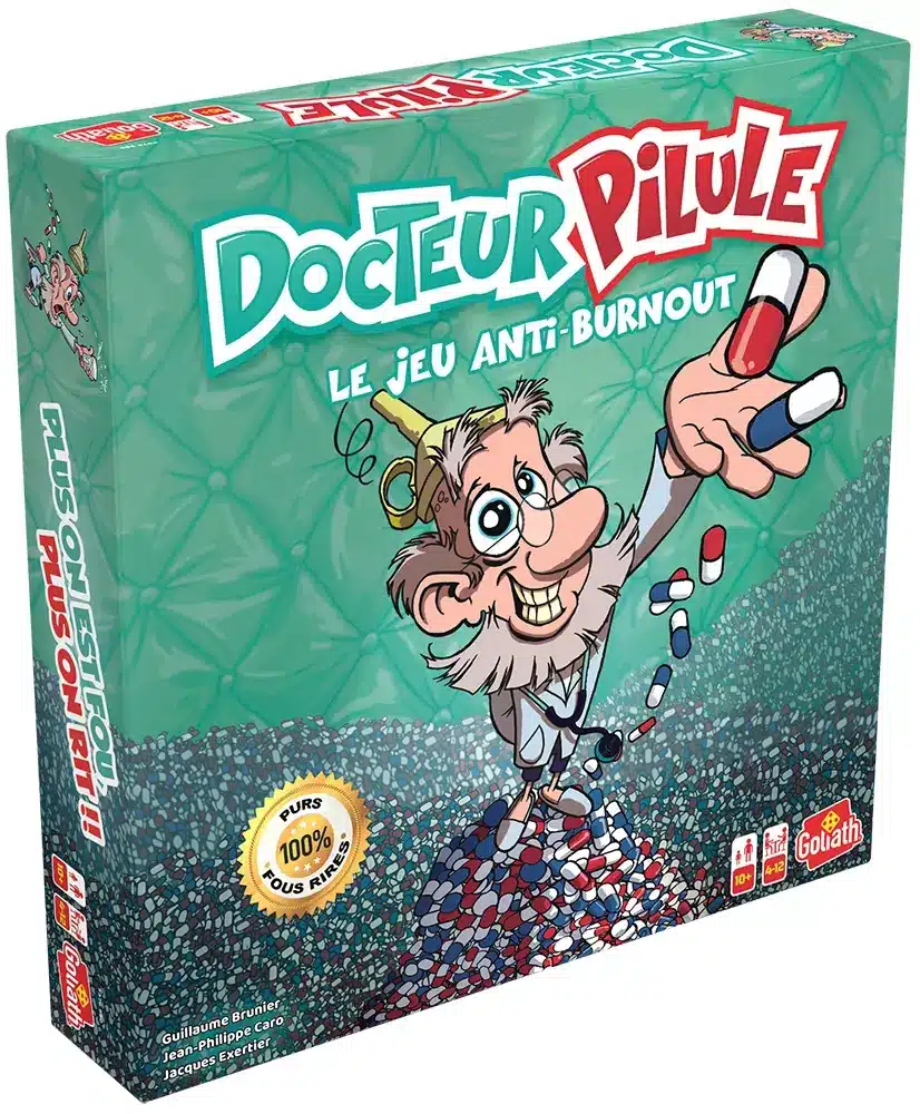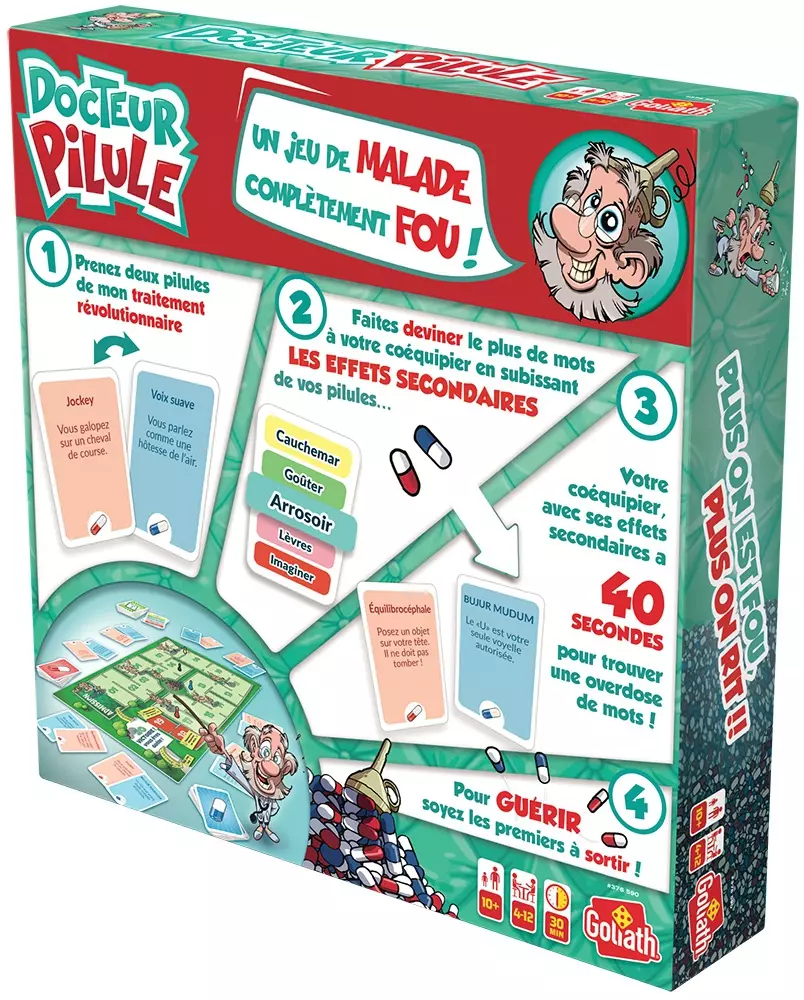 Docteur Pilule est un jeu d’ambiance déjanté plein de fous et de rires pour 4 à 12 joueurs