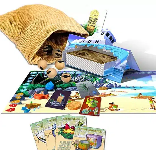 Il est possible de gagner tous ensemble (comme c’est beau) ou tout seul comme un fennec… Il est également possible que ce soit l’île qui l’emporte si vous êtes tous malencontreusement décédés en route…C’est un jeu presque coopératif où vous devrez être aussi fourbe que diplomate pour vous garantir une place pour le voyage retour !