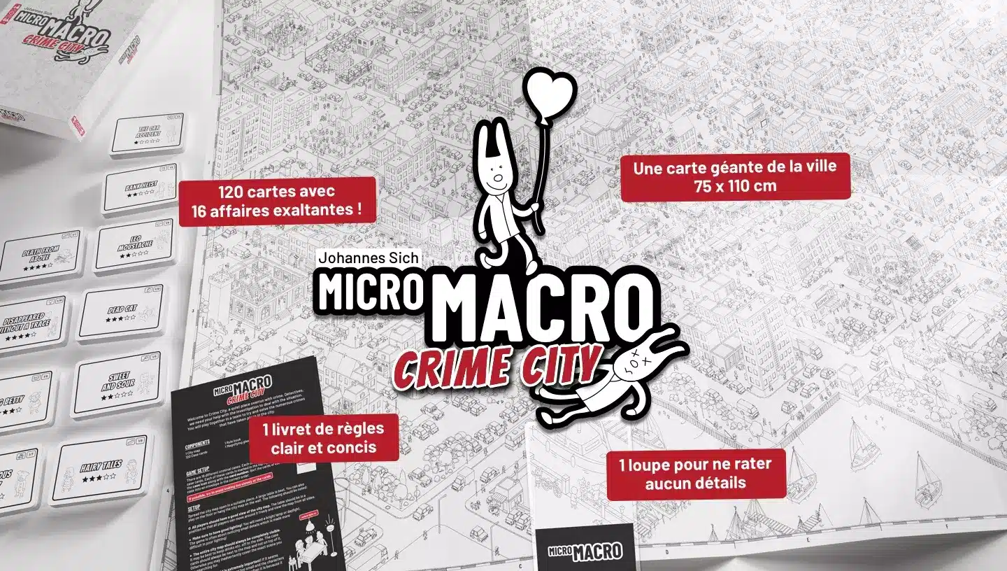 MicroMacro Crime City est un jeu d’observation, de déduction et d’enquête pour 1 à 4 joueurs.