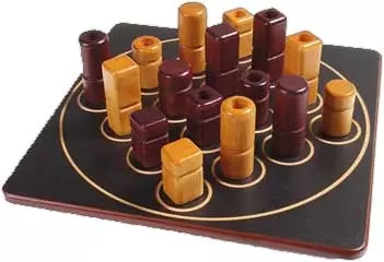 Mais ne croyez pas que vous jouerez celles que vous voudrez : c’est l’adversaire qui choisit pour vous !Les seize pièces du jeu, toutes différentes, possèdent chacune 4 caractères distincts : haute ou basse, ronde ou carrée, claire ou foncée, pleine ou creuse.