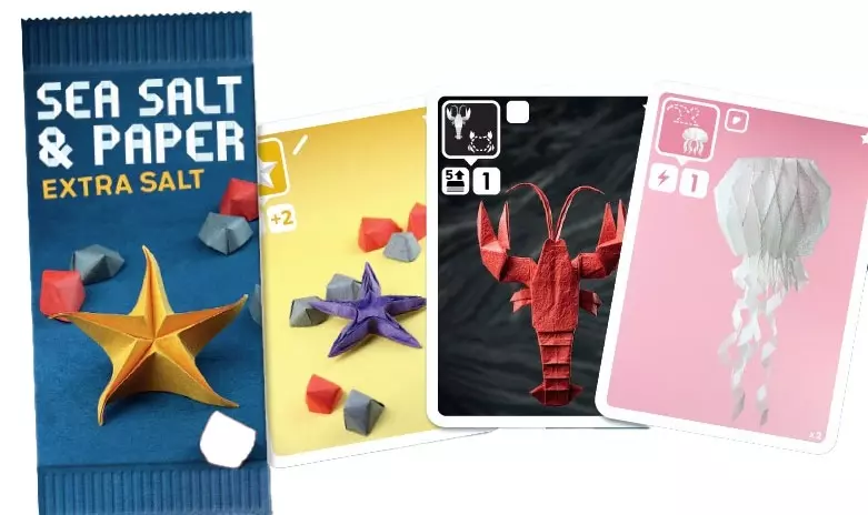 Extra Salt est une extension pour le jeu de cartes Sea Salt & Paper. Cette extension propose 5 nouveaux types de cartes pour relever et renouveler vos parties : La méduse – Le homard – Le panier de crabes – L’étoile de mer – L’hippocampe.