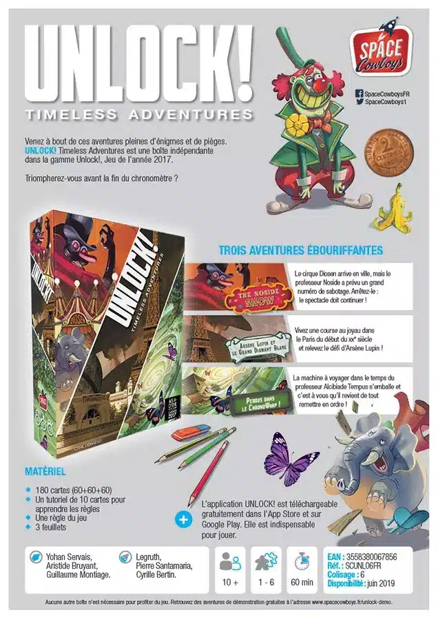 La boîte Unlock! 6 Timeless Adventures contient trois nouvelles aventures :