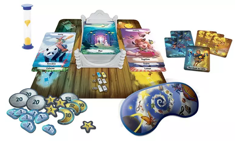 Les autres joueurs incarnent des fées, des croque-Mitaines et des Marchands de Sable qui marquent des points diféremment. Au terme de sa nuit, le Rêveur doit restituer le songe, en se souvenant d’un maximum d’éléments oniriques… De préférence en brodant et en romançant au maximum ! Le joueur qui totalise le plus de points à la fin de la partie est désigné gagnant.