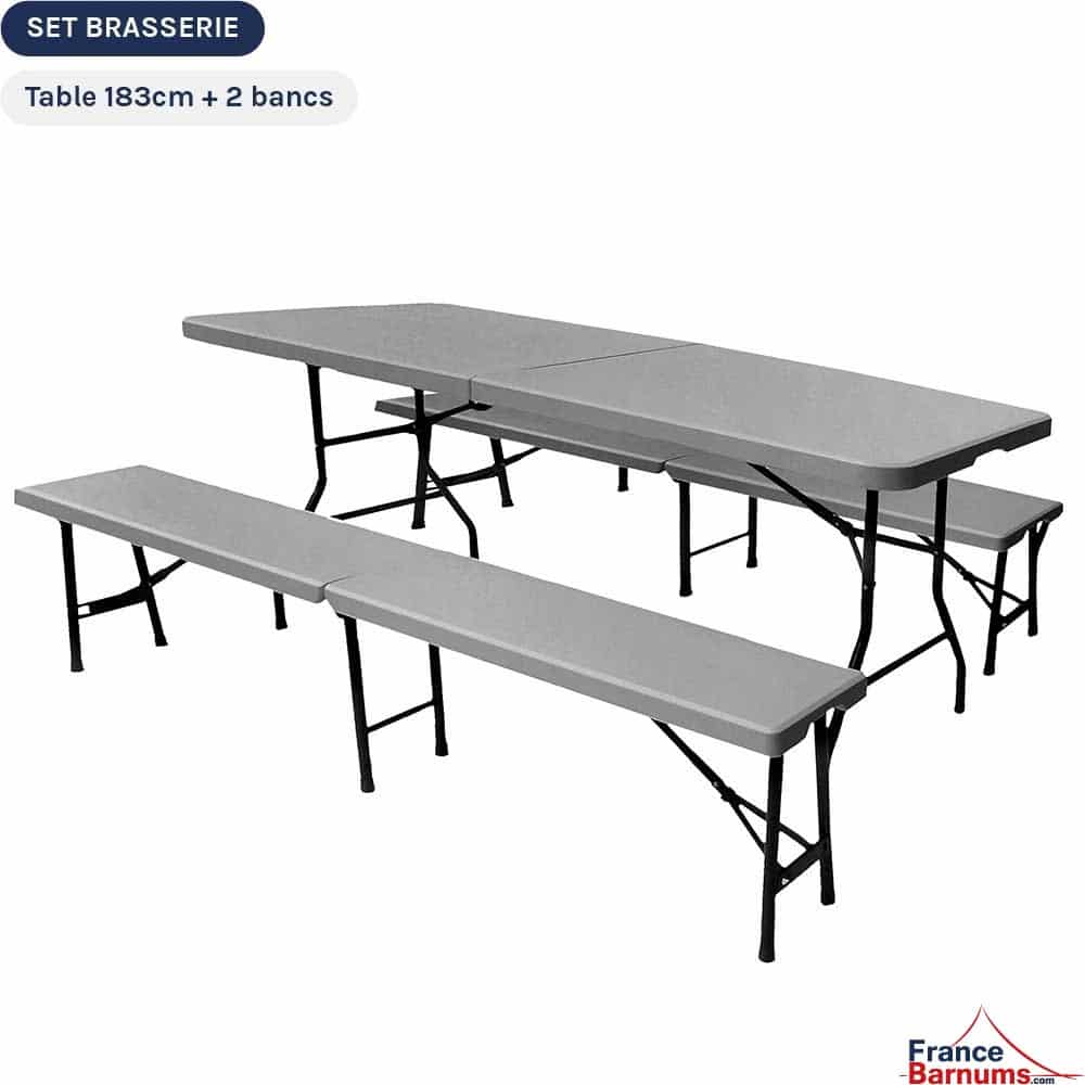 Peut être associé aux tables pliantes pour un set brasserie complet.